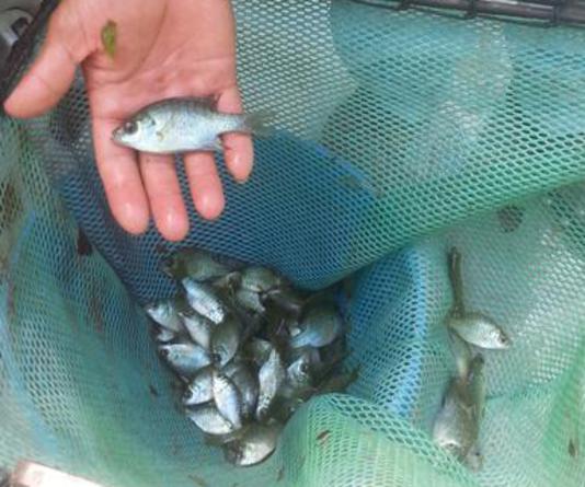 Blue Gill/ Red Ear Sunfish fingerlings in the 1" - 2" size range.