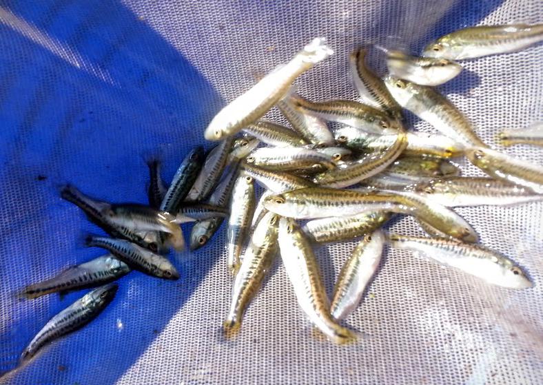 Blue Tilapia Fingerlings in the 3" - 4" size range.