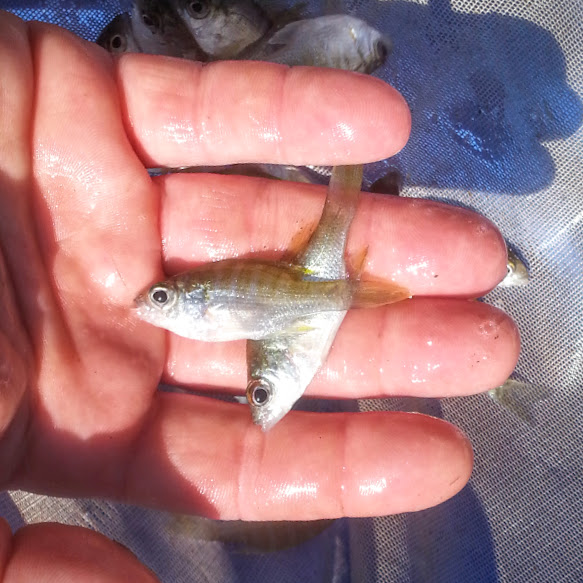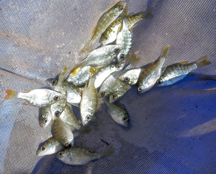 Blue Gill/ Red ear Sunfish fingerlings in the 2" - 3" size range.